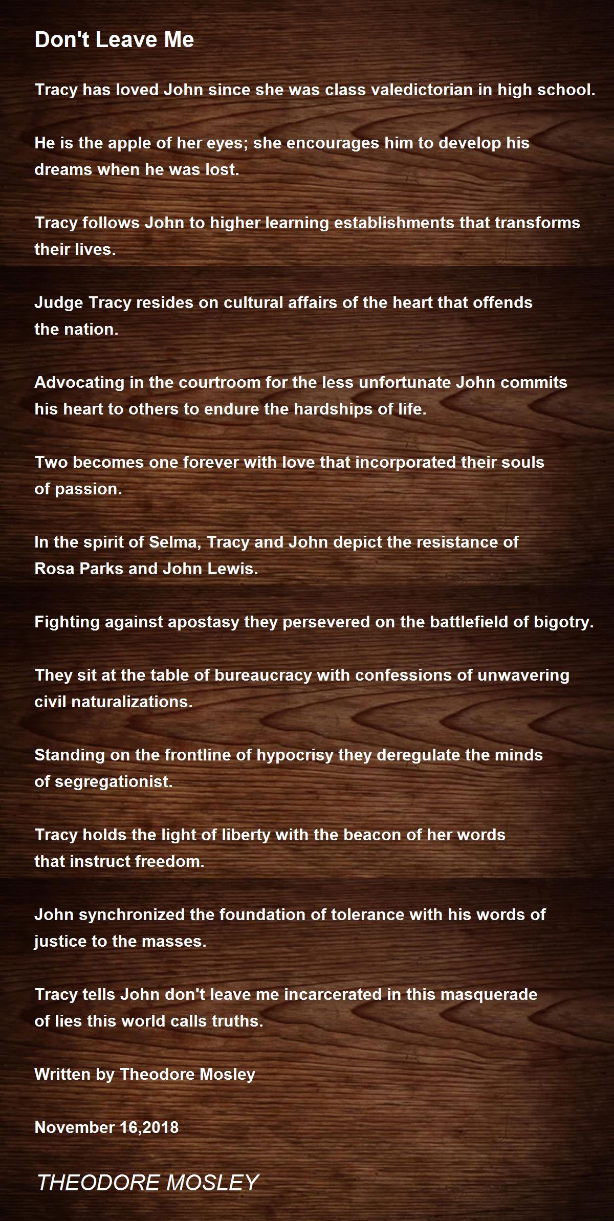 Tracy tells John don't leave me incarcerated in this masquerade of lies this world calls truths.