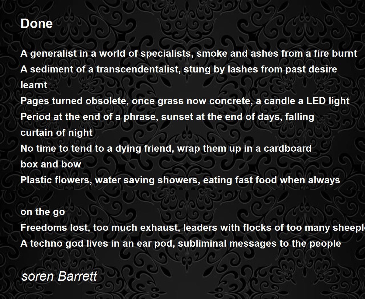 A sediment of a transcendentalist, stung by lashes from past desire learnt