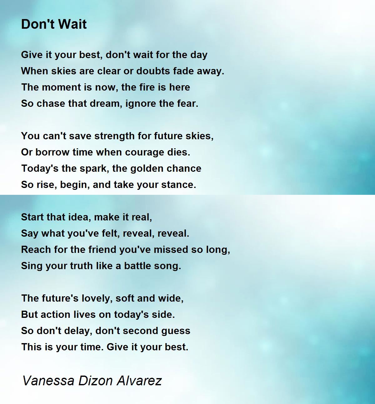 Don't Wait Poem by Vanessa Dizon Alvarez