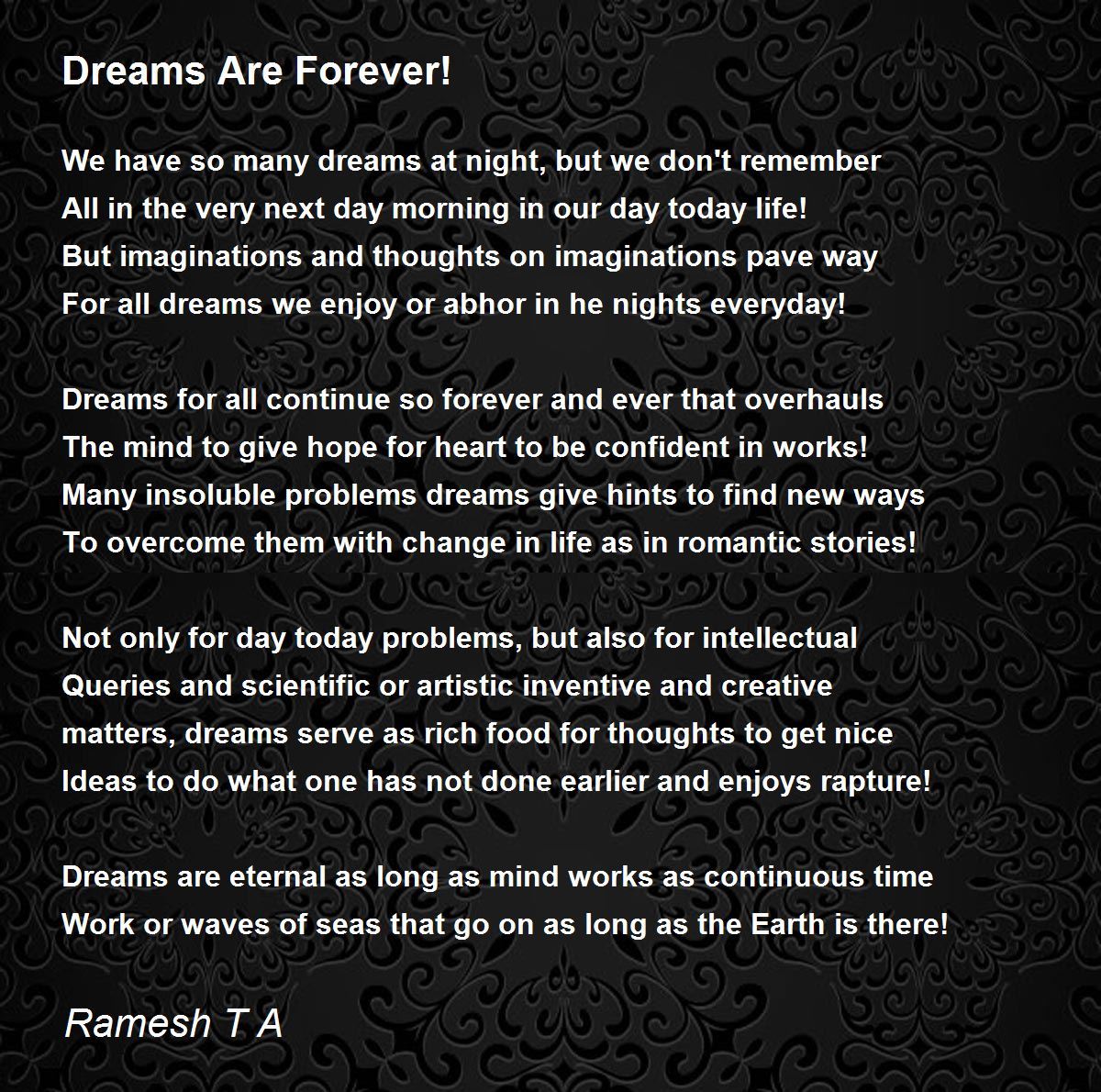 matters, dreams serve as rich food for thoughts to get nice
