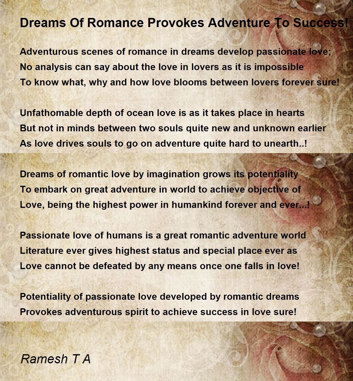 Potentiality of passionate love is developed when a person dreams in romantic mood. An amazing poem is very brilliantly penned. This is very thoughtful...10