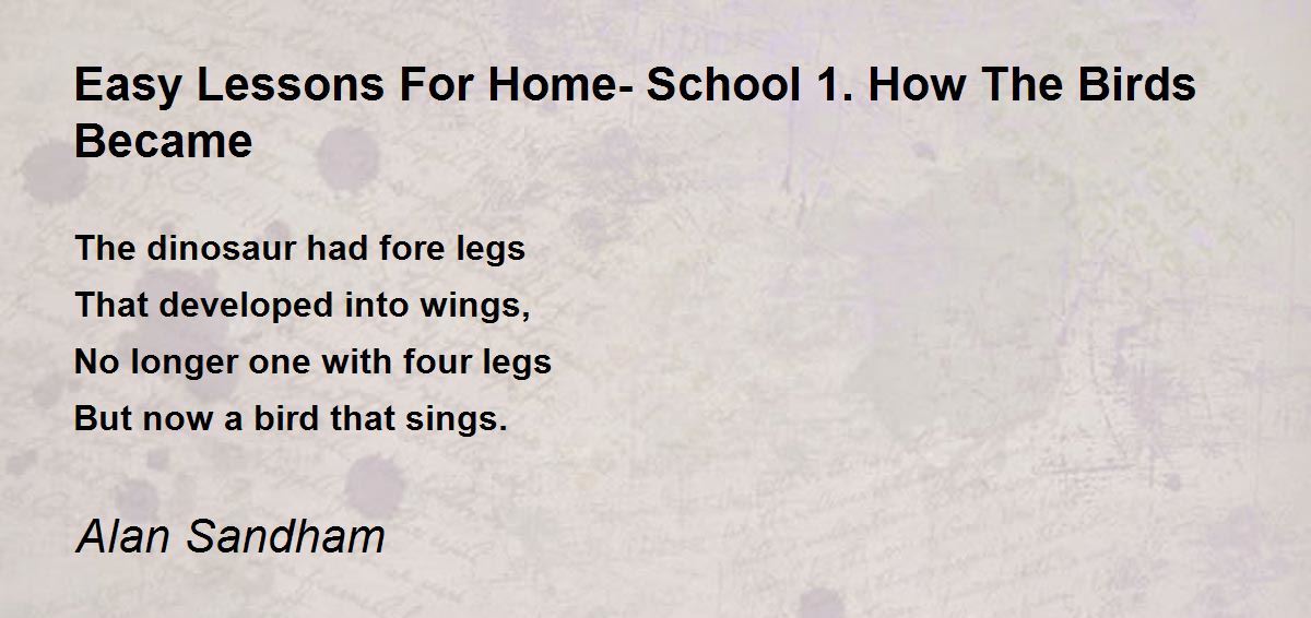 The dinosaur had fore legs That developed into wings, No longer one with four legs But now a bird that sings.