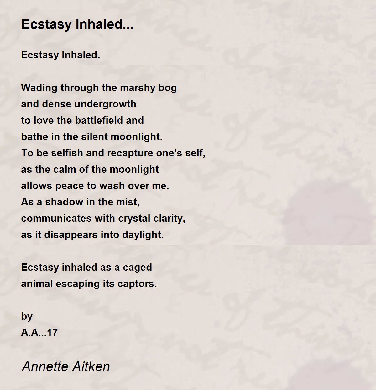 Ecstasy is that emotion where our whole being dance in delight.it sweeps us.We would not want to let go of this feeling.It is inner joy.We can find it in the sublime heart. A marvelous write, thanks for sharing.