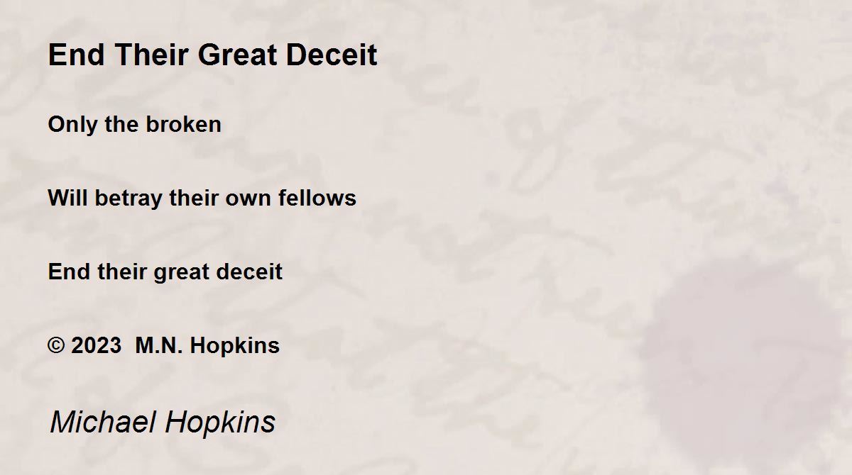 Note: I wrote this poem in the haiku style of poetry last week and published it for the first time today, the 24th of April,2023. Only those of great weakness and corruptibility will betray their fellow citizens. Unfortunately, this is what passes for leadership in our current times.