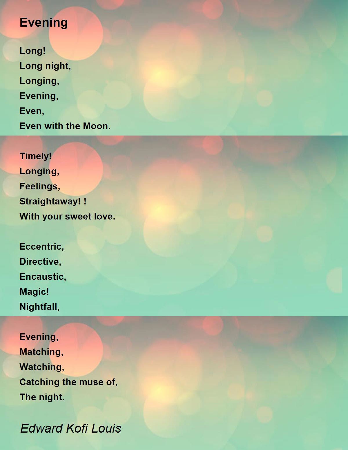 Evening! ! ! Longing! Feelings of love. Thanks for your comment on my poem. Stay blessed always.