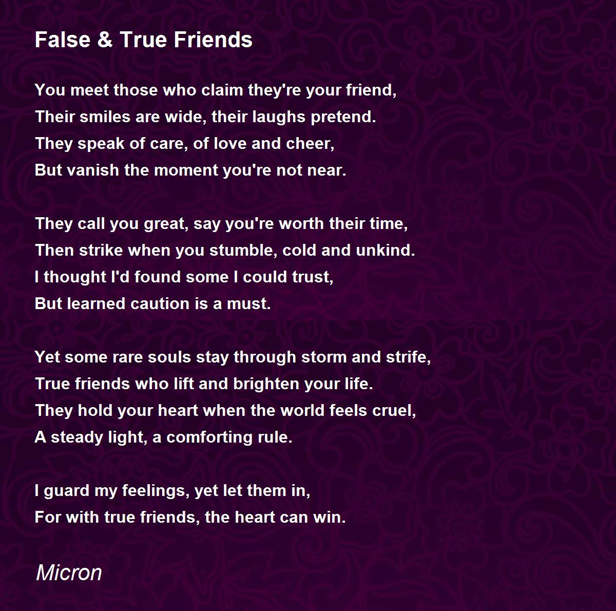 So very true. Been there myself. It takes a long time to get to know who your friends really are. A meaningful little poem Well done.