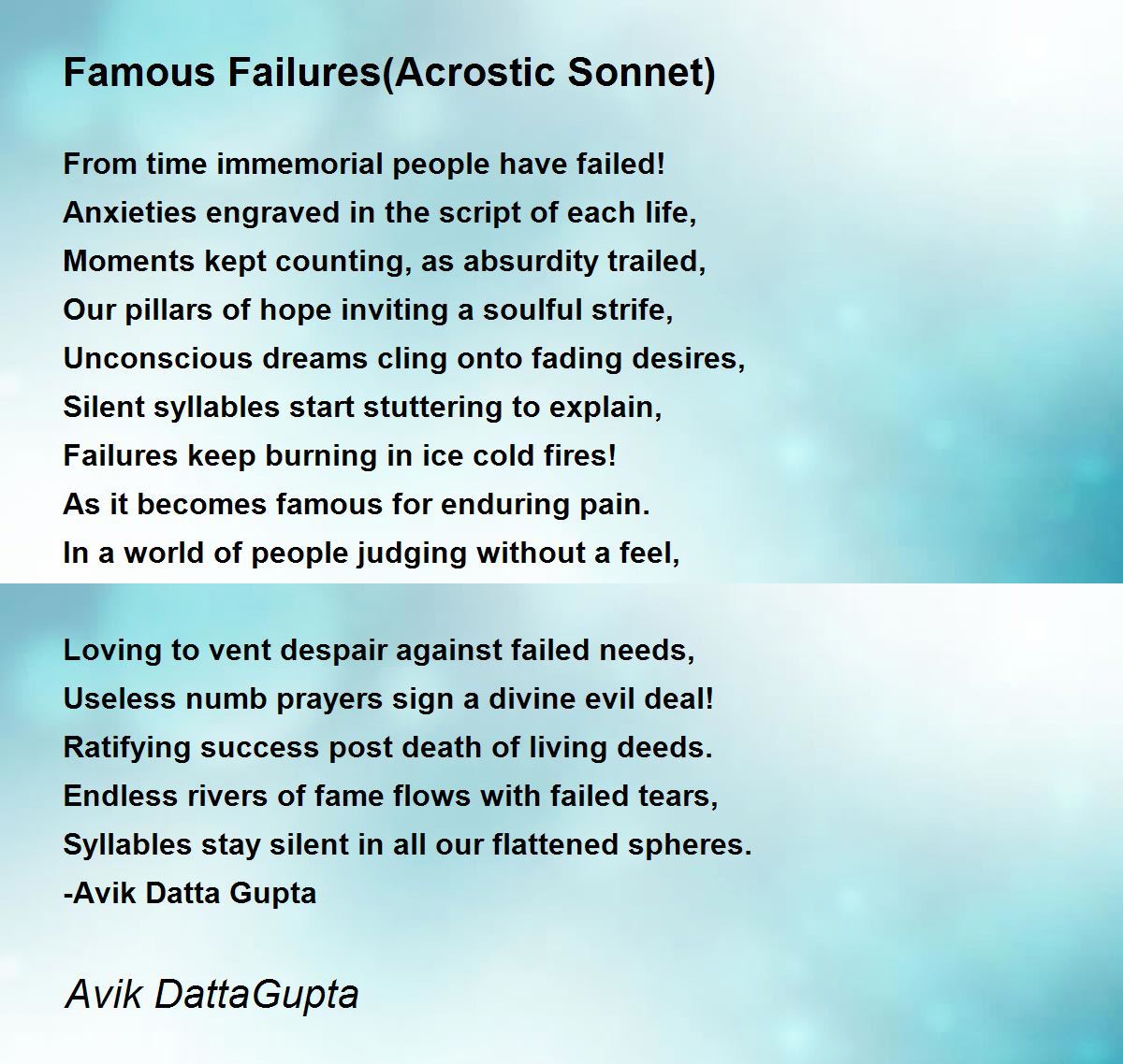 Endless rivers of fame flows with failed tears,