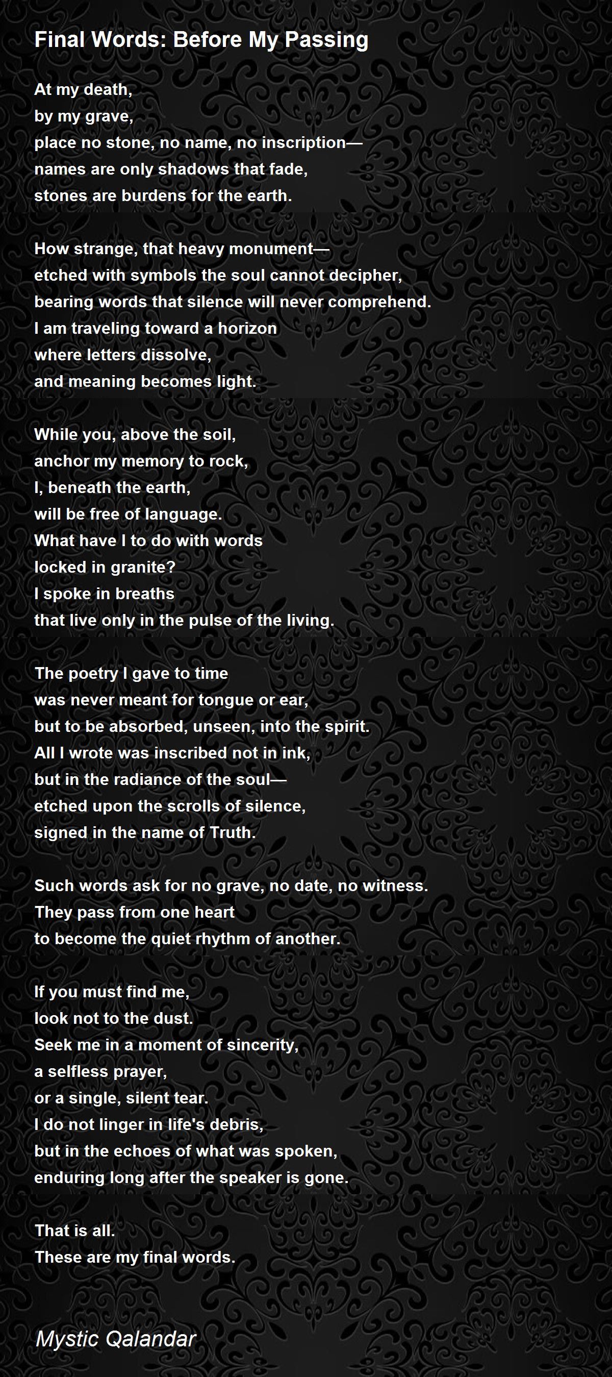Such words ask for no grave, no date, no witness.