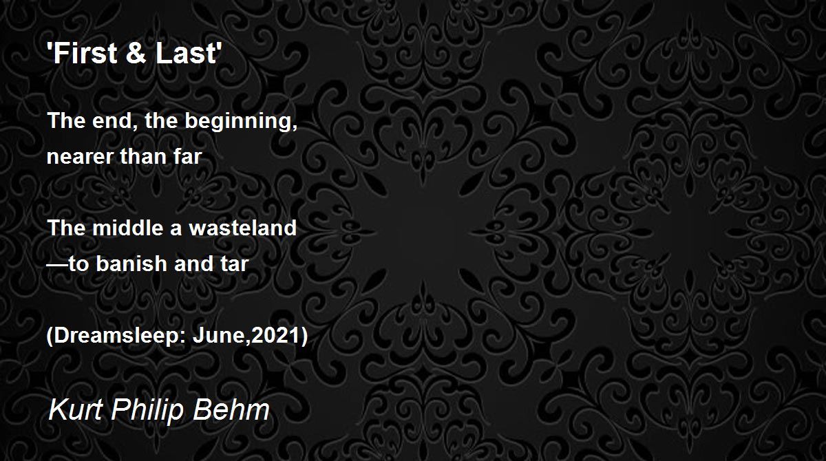 The end, the beginning, nearer than far The middle a wasteland —to banish and tar (Dreamsleep: June,2021)
