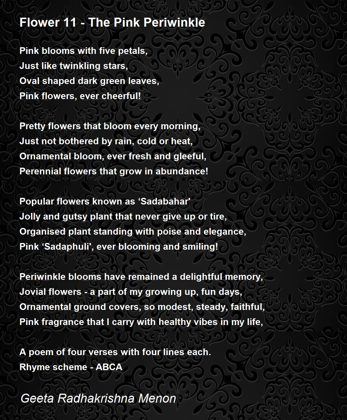 A poem of four verses with four lines each.