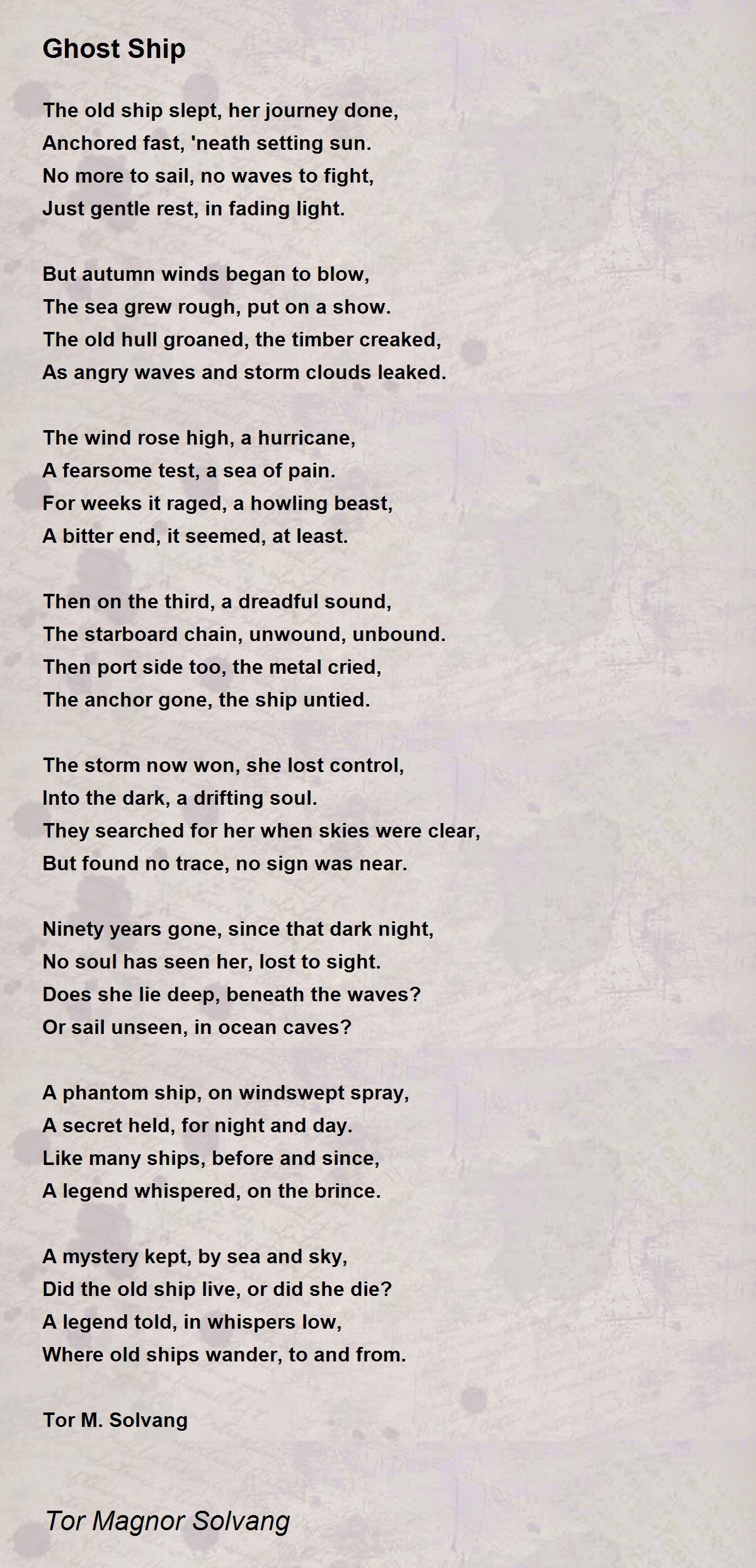 A phantom ship, on windswept spray,