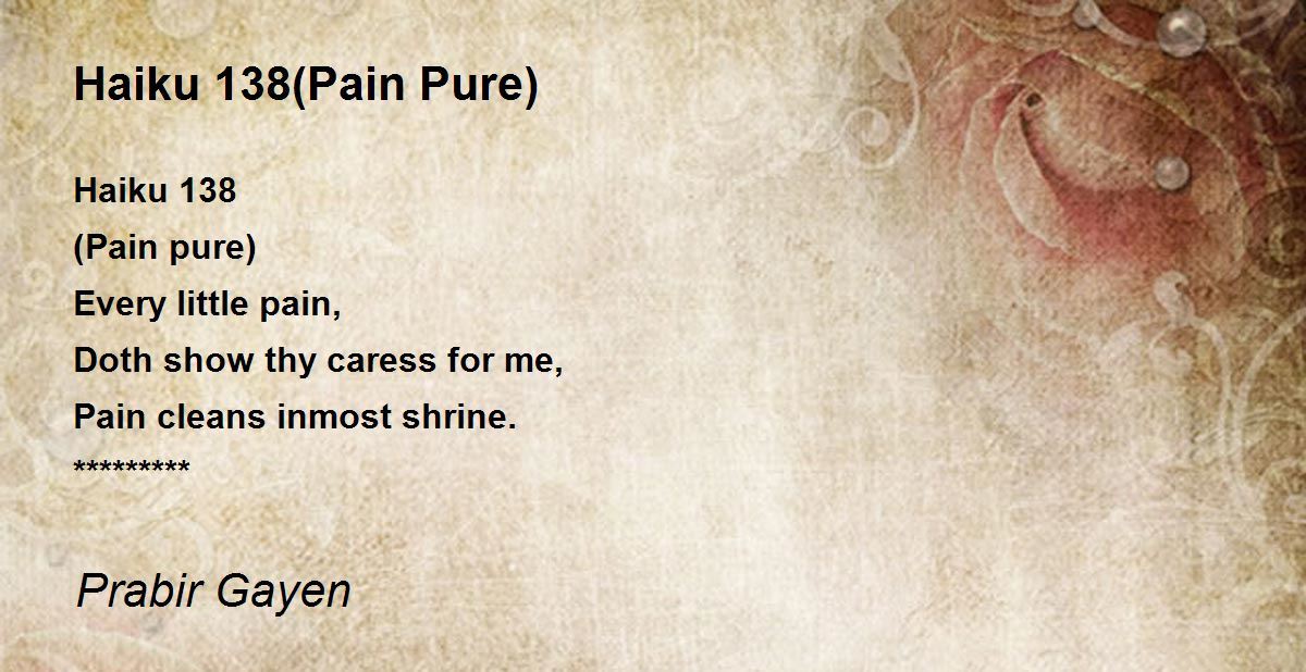 Lovely Haiku Every little pain, Doth show thy caress for me, Pain pures inmost shrine.