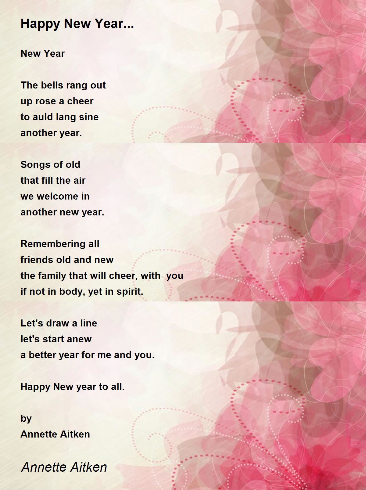 Yes, indeed, 'let's draw a line, let's start anew, A better year for me and you. Happy New Year to all.' Thanks! Happy New Year to you too!