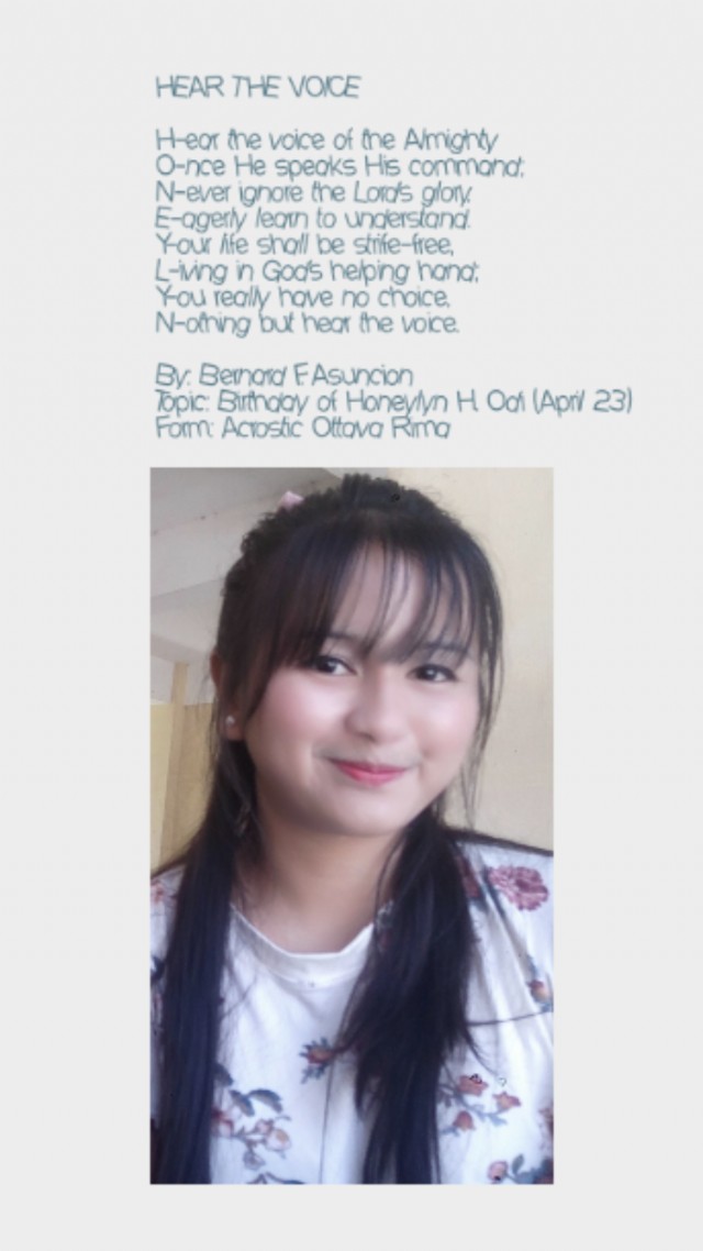Topic: Birthday of Honeylyn H. Odi (April 23)