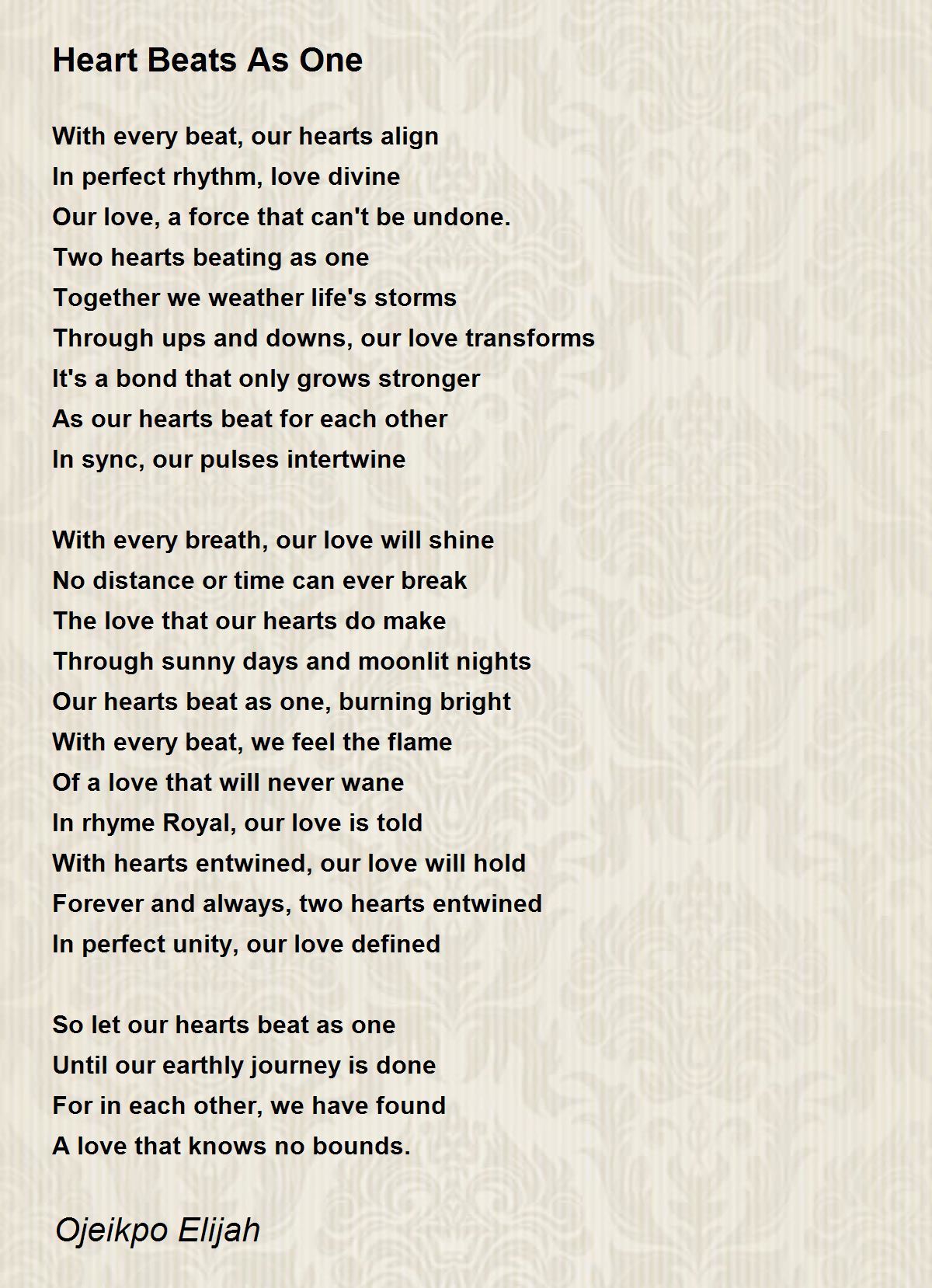 So let our hearts beat as one