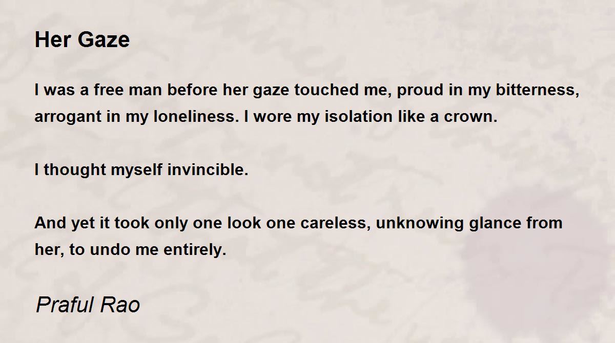 I was a free man before her gaze touched me, proud in my bitterness, arrogant in my loneliness. I wore my isolation like a crown.