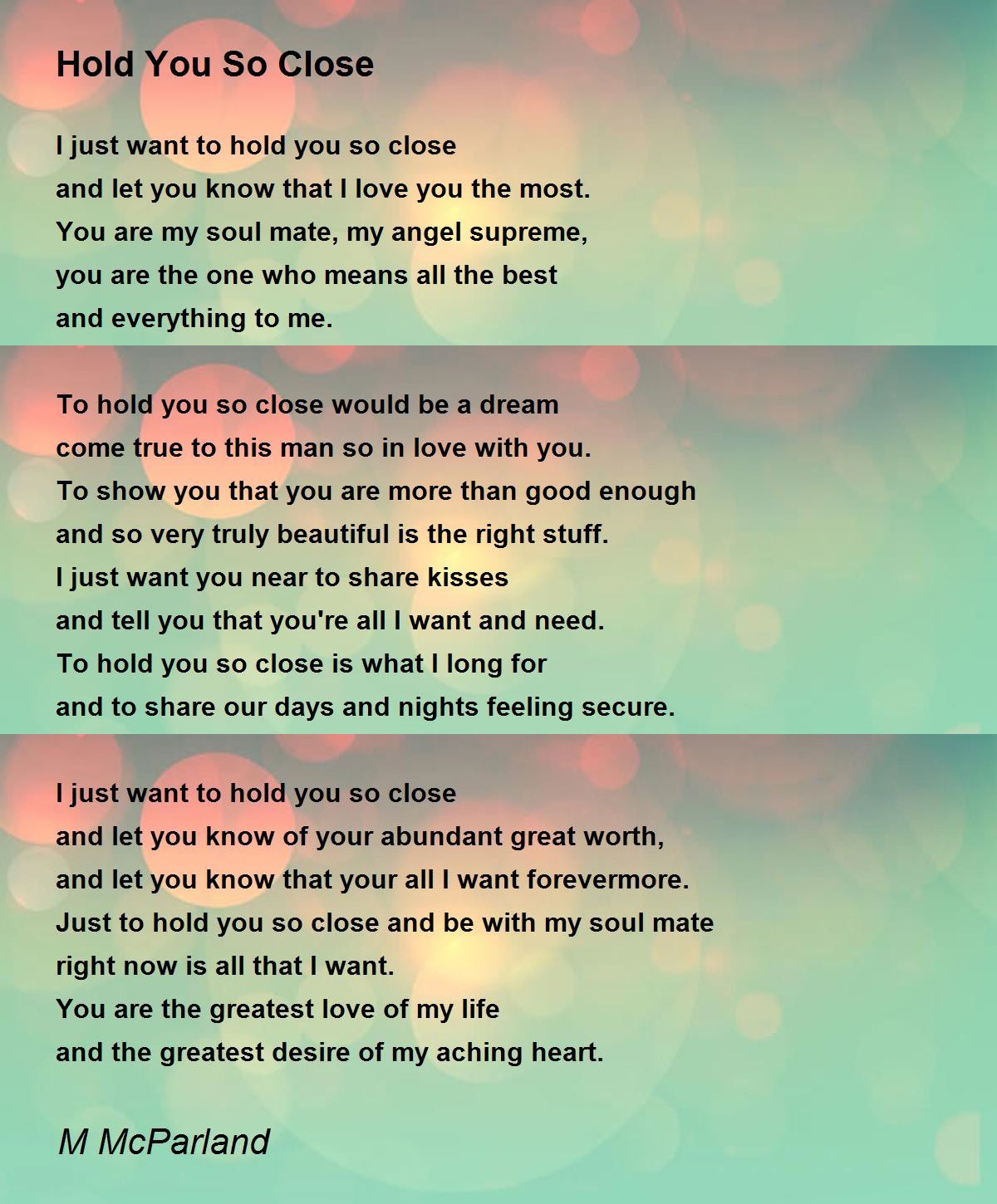Just to hold you so close and be with my soul mate