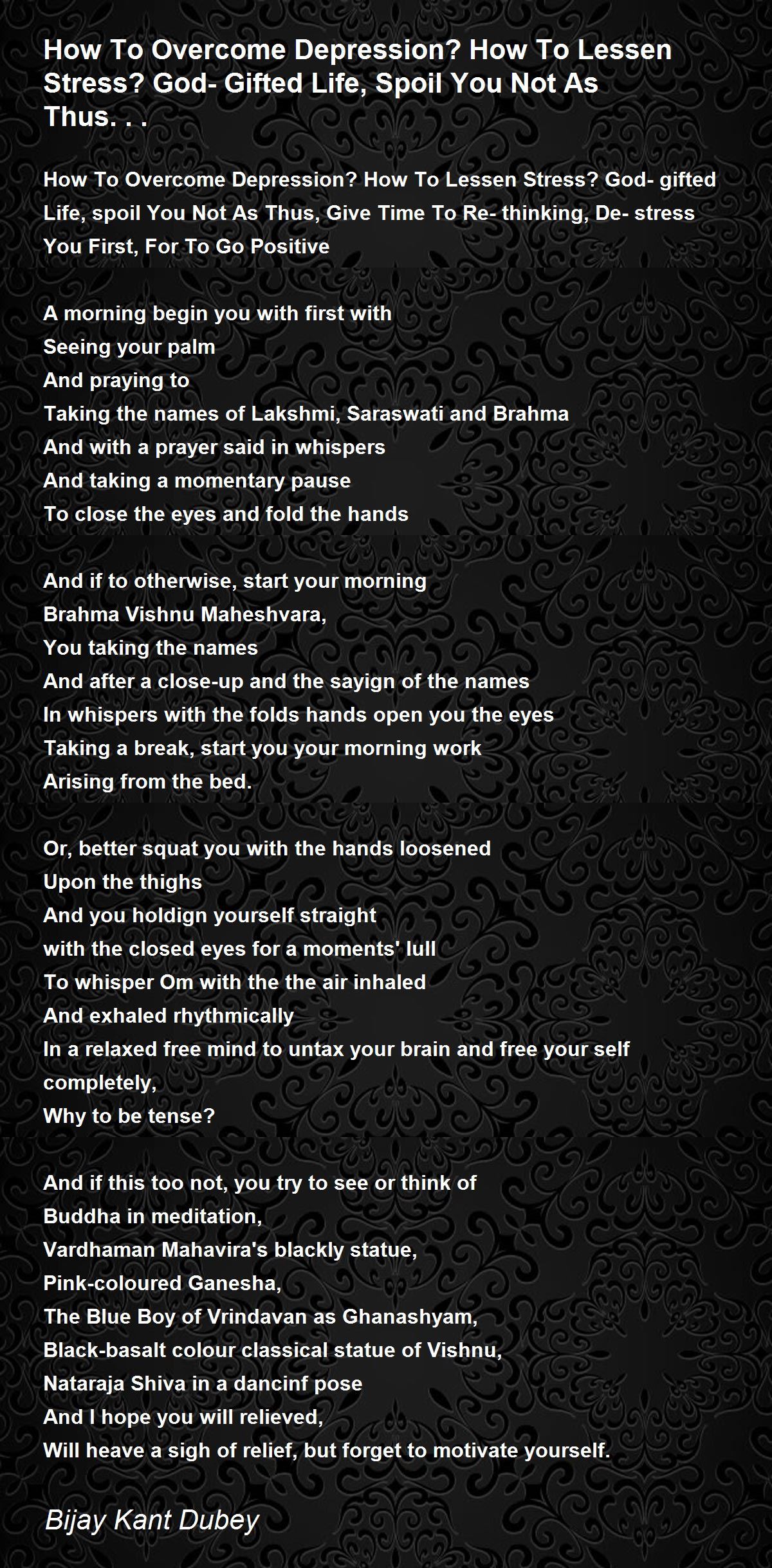 How To Overcome Depression? How To Lessen Stress? God-gifted Life, spoil You Not As Thus, Give Time To Re-thinking, De-stress You First, For To Go Positive