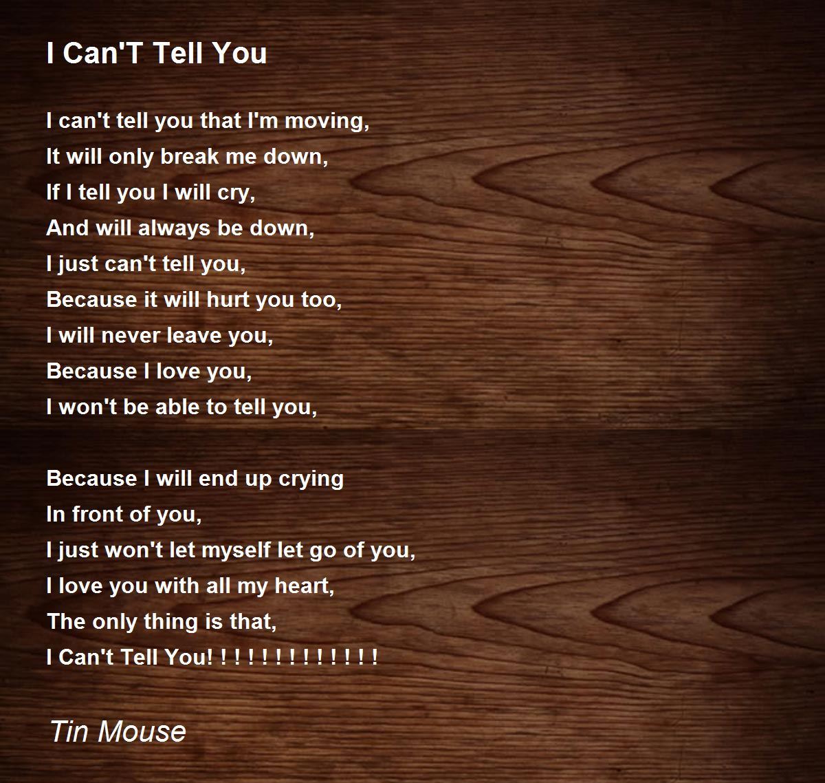 I Can't Tell You! ! ! ! ! ! ! ! ! ! ! ! !