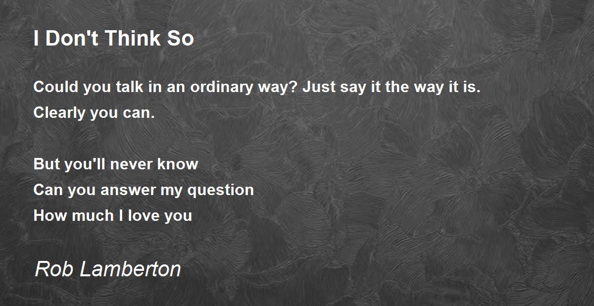 The question, though sounds ordinary, it can not be answered in ordinary way.Love is a deeper feeling and it is unique to every soul.Your poem is a simple poem with deeper meaning.