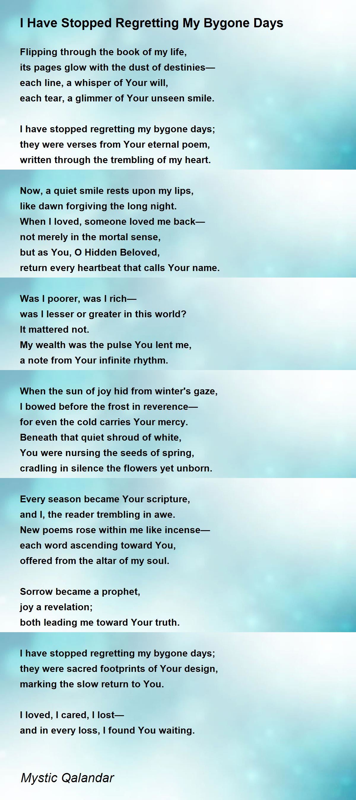 When the sun of joy hid from winter's gaze, I bowed before the frost in reverence— for even the cold carries Your mercy. Beneath that quiet shroud of white, You were nursing the seeds of spring, cradling in silence the flowers yet unborn.