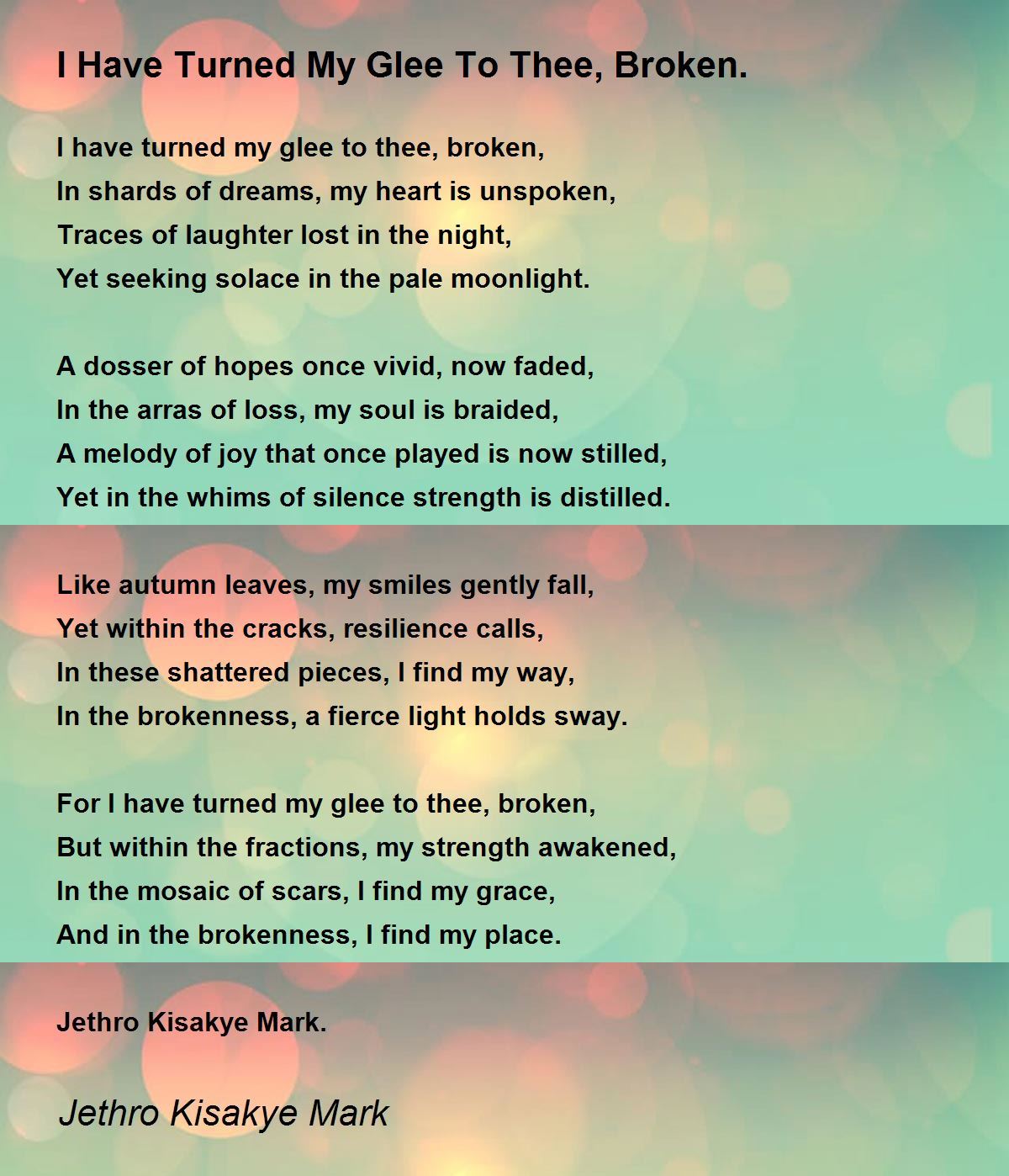 For I have turned my glee to thee, broken,