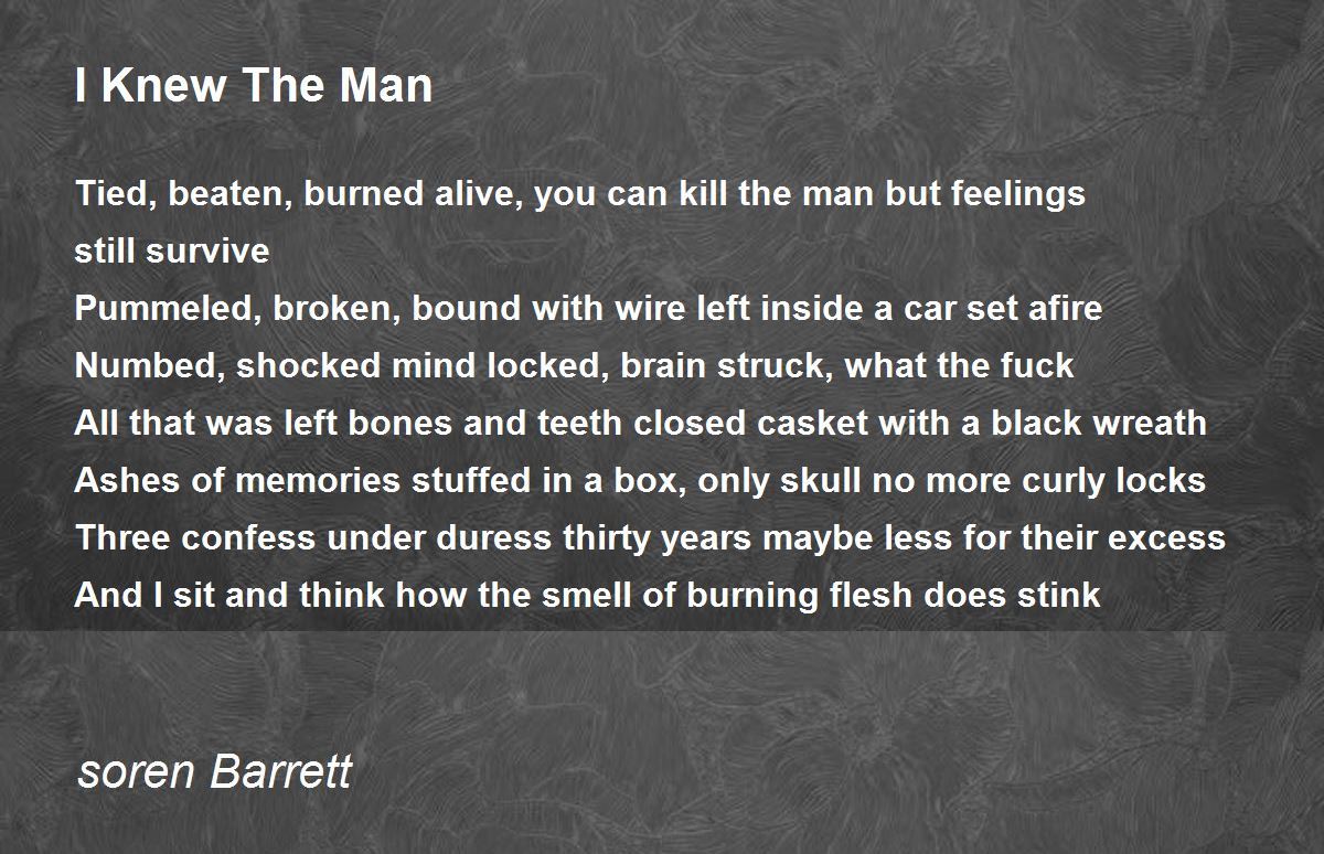 Tied, beaten, burned alive, you can kill the man but feelings still survive