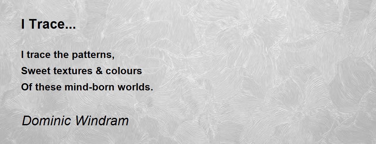 I trace the patterns, Sweet textures & colours Of these mind-born worlds.