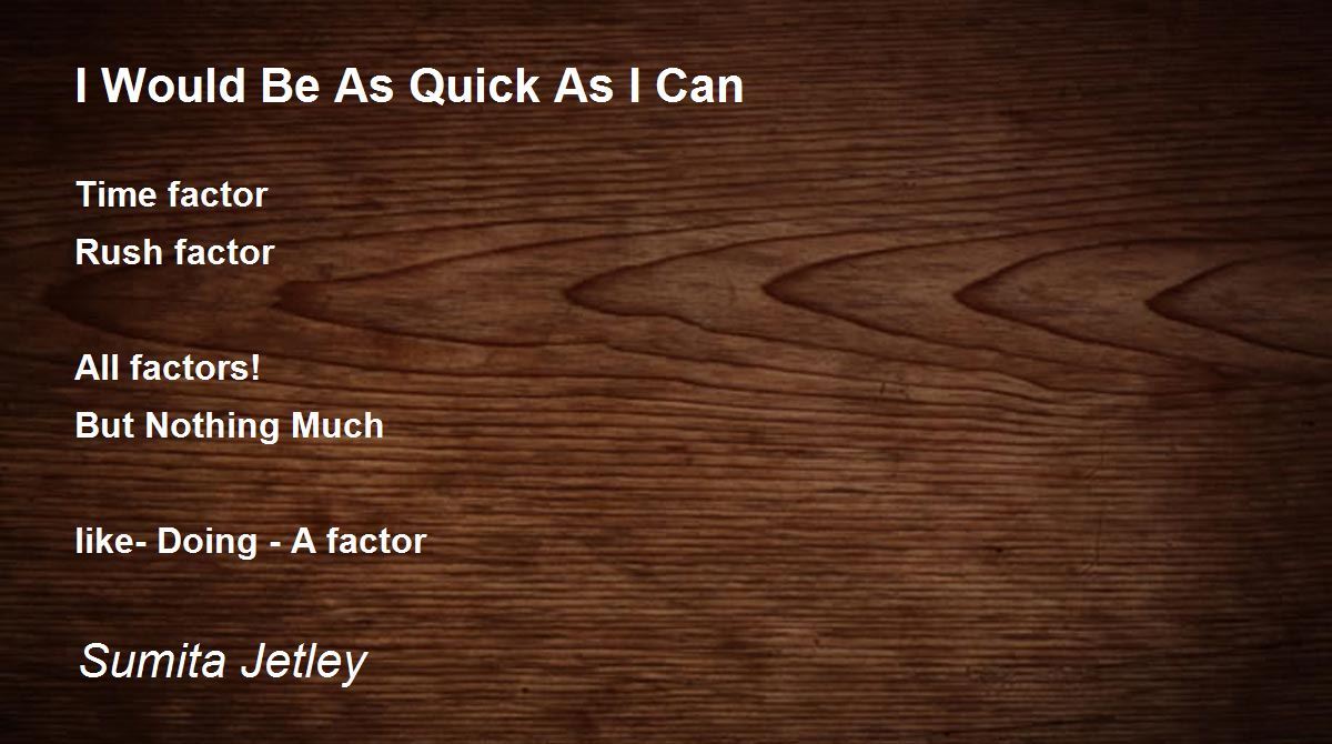 Time factor Rush factor All factors! But Nothing Much like- Doing - A factor