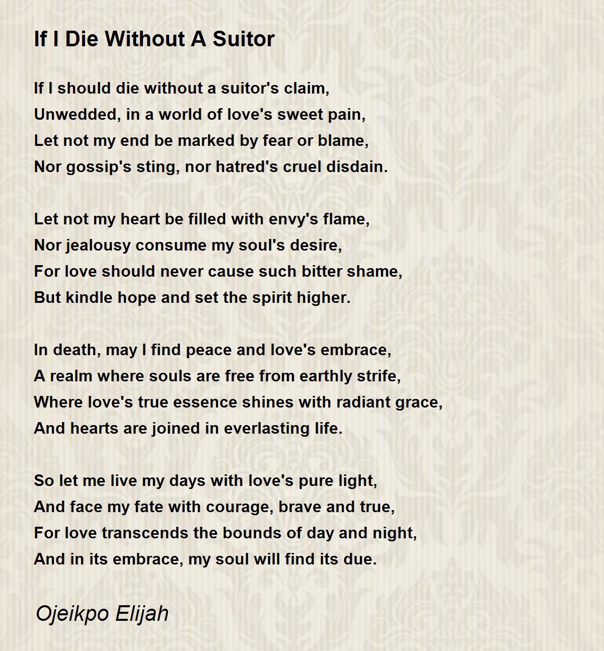 If I should die without a suitor's claim,