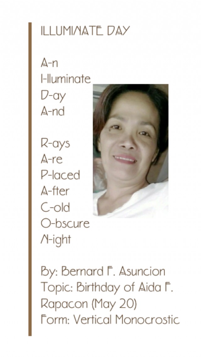 Topic: Birthday of Aida F. Rapacon (May 20)