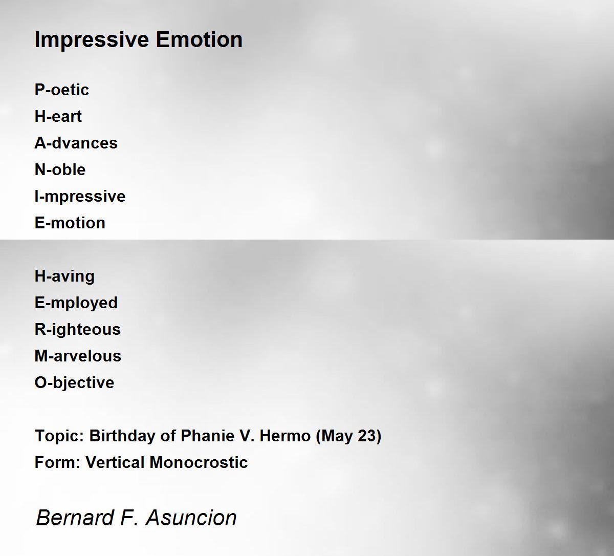 Topic: Birthday of Phanie V. Hermo (May 23)