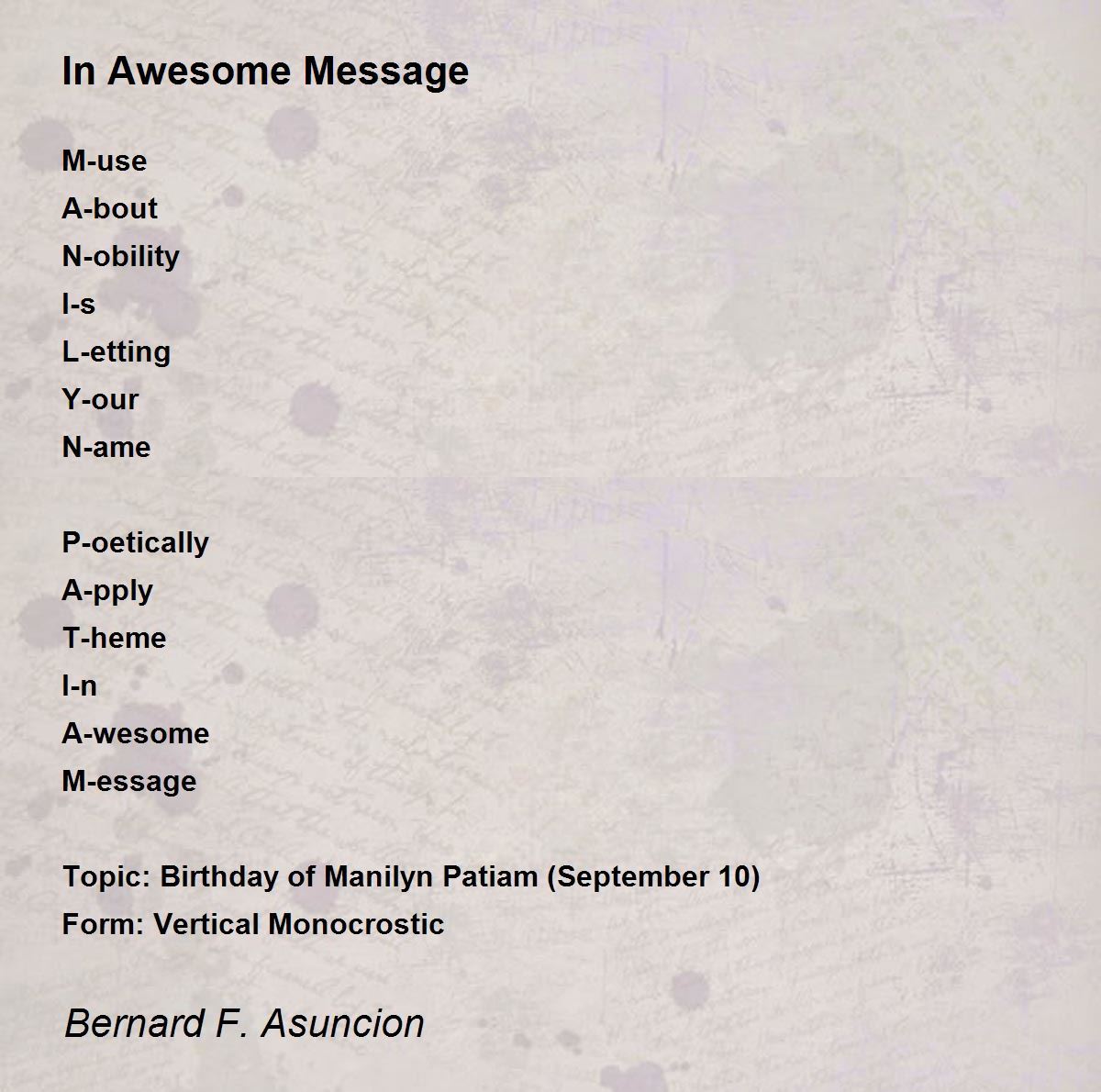 Topic: Birthday of Manilyn Patiam (September 10)