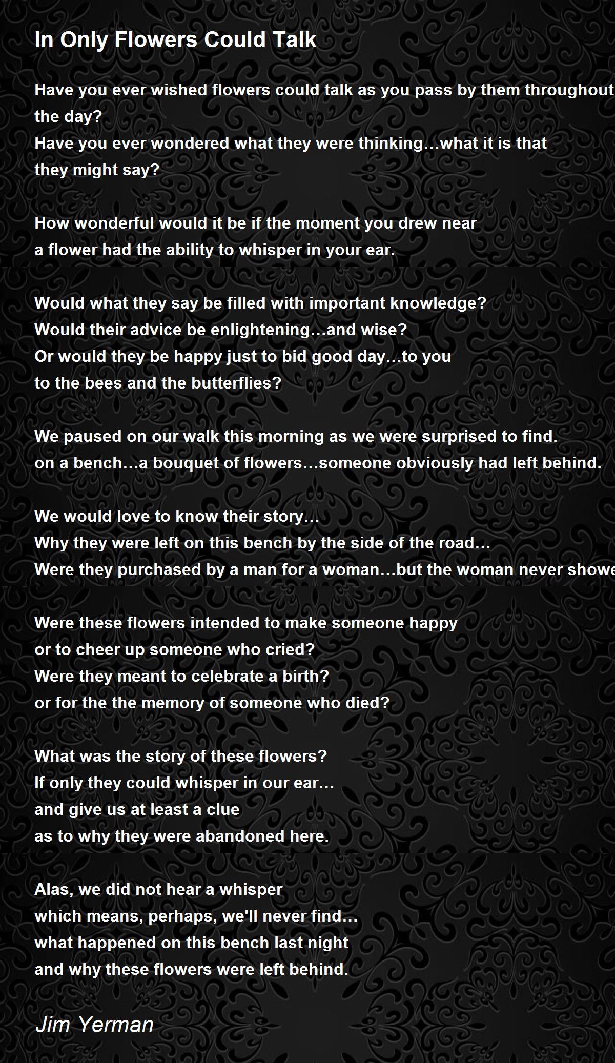 Have you ever wished flowers could talk as you pass by them throughout the day?