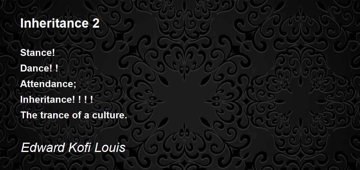 Stance! Dance! ! Attendance; Inheritance! ! ! ! The trance of a culture.