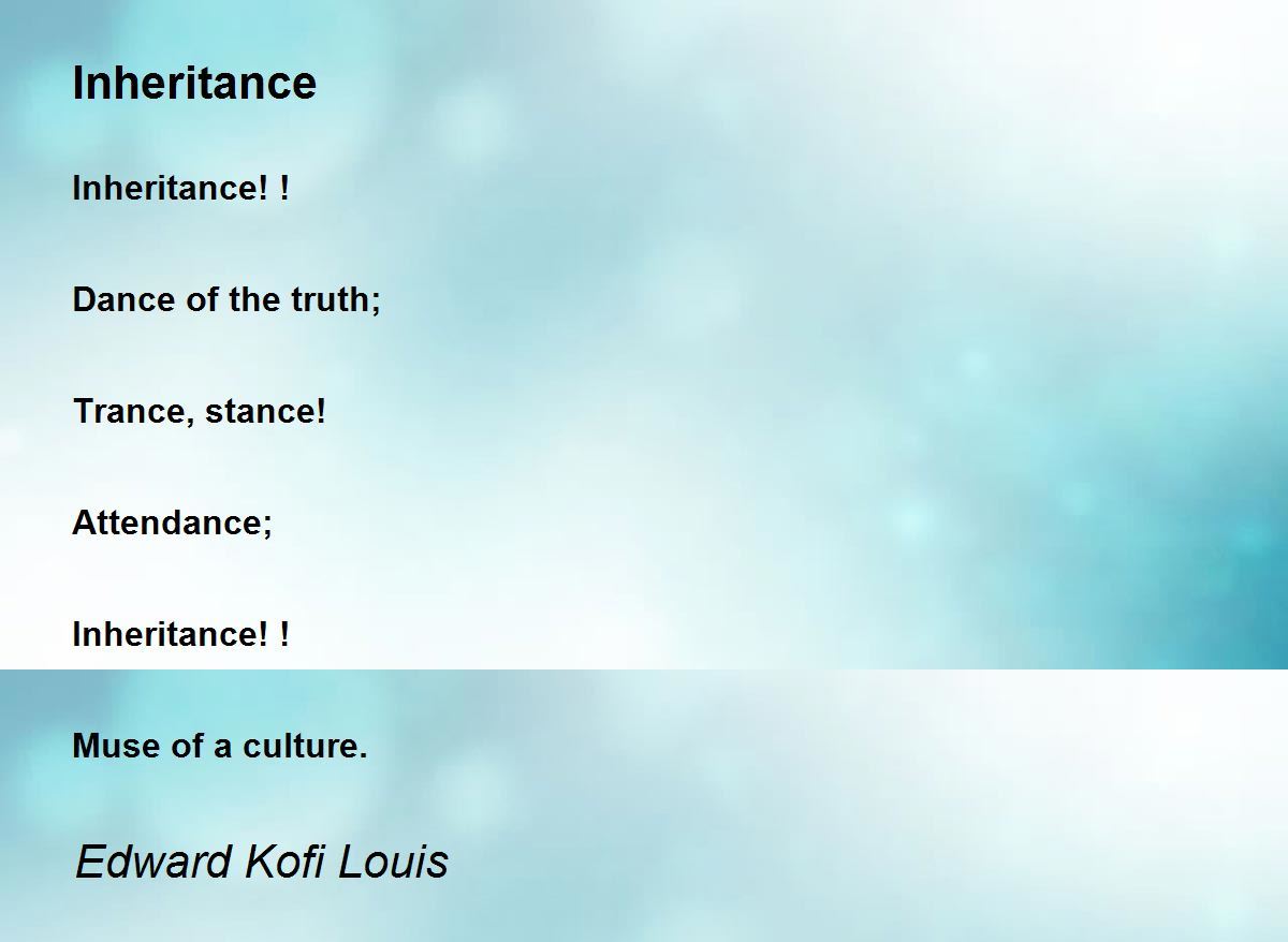 Inheritance! ! Dance of the truth; Trance, stance! Attendance; Inheritance! ! Muse of a culture.