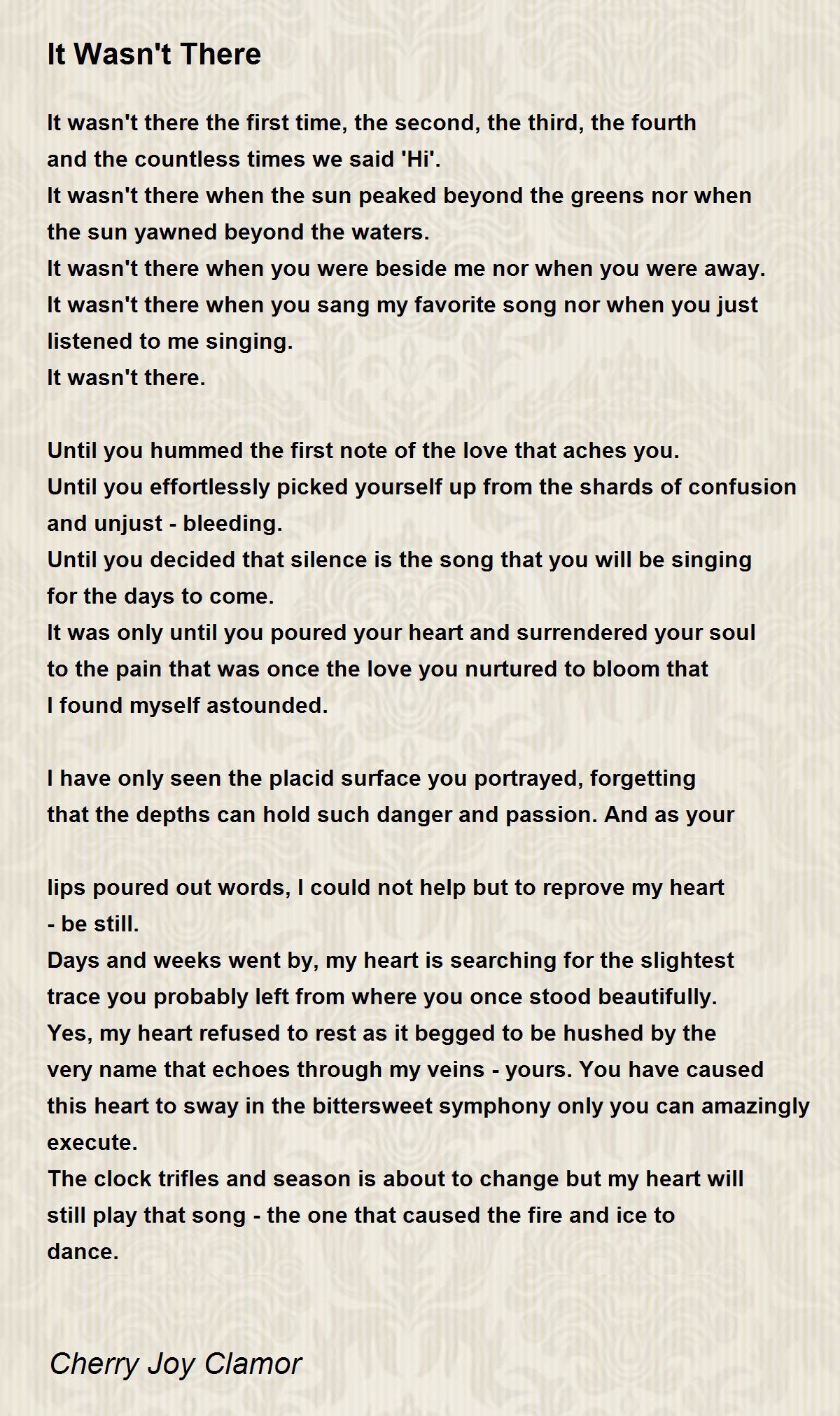 It wasn't there when you sang my favorite song nor when you just listened to me singing.