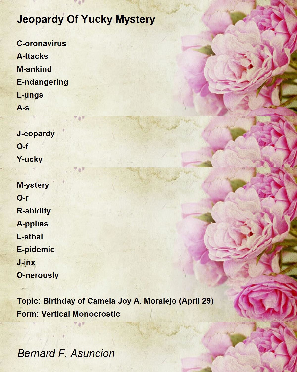 Topic: Birthday of Camela Joy A. Moralejo (April 29)