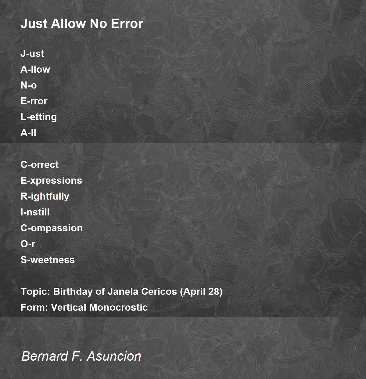 Topic: Birthday of Janela Cericos (April 28)