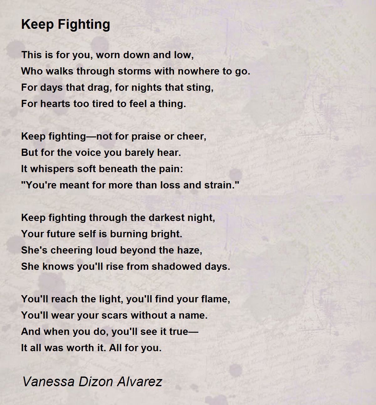 Keep fighting—not for praise or cheer,