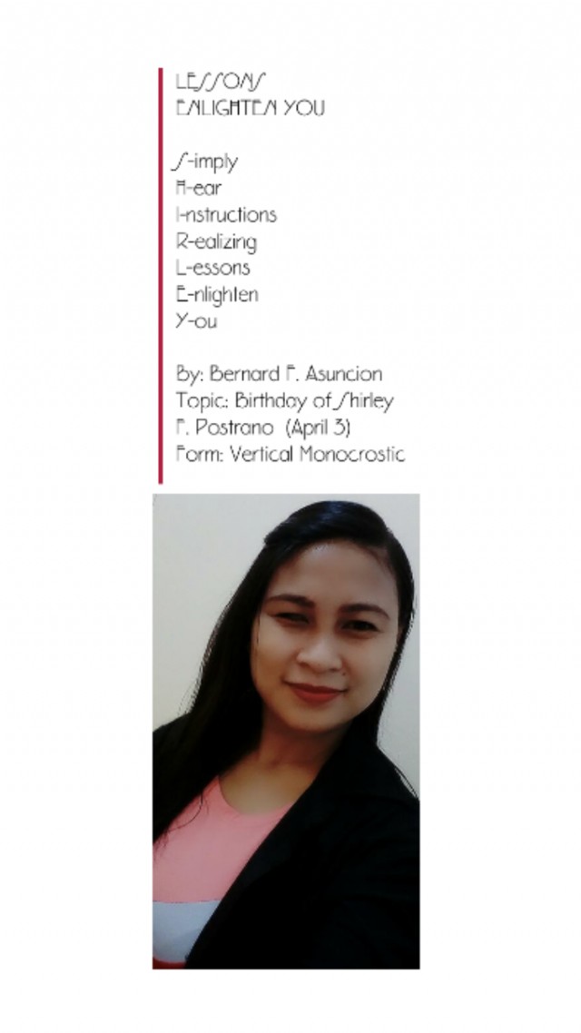 Topic: Birthday of Shirley F. Postrano(April 3)