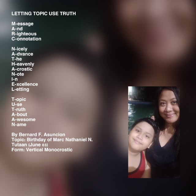 Topic: Birthday of Marc Nathaniel N. Tutaan (June 03)