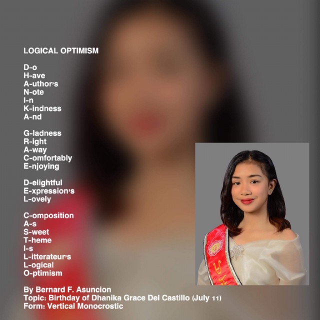 Topic: Birthday of Dhanika Grace Del Castillo (July 11)