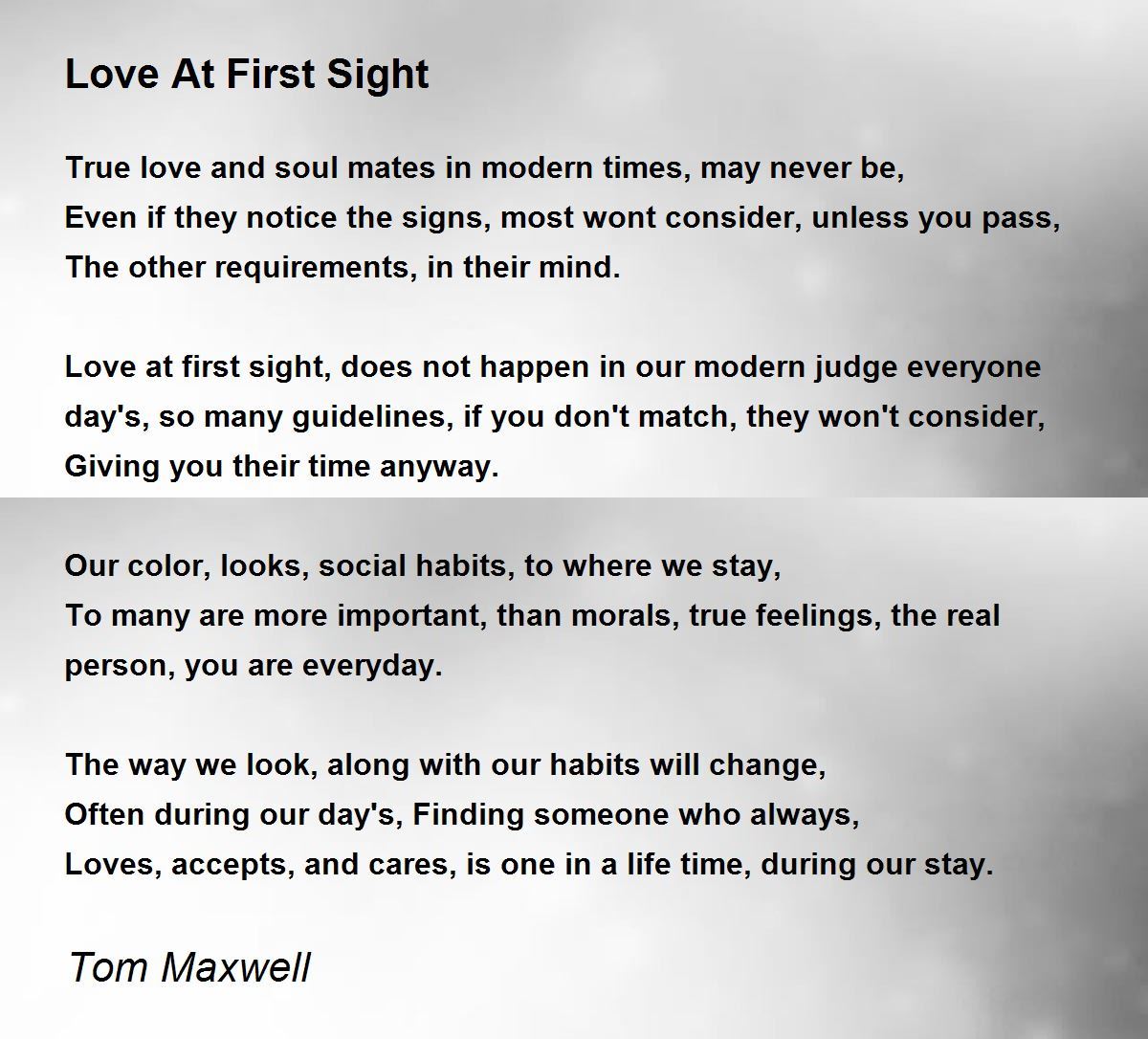 Love at first sight, does not happen in our modern judge everyone day's, so many guidelines, if you don't match, they won't consider,