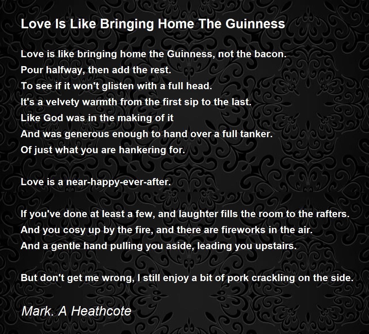 Love is like bringing home the Guinness, not the bacon.