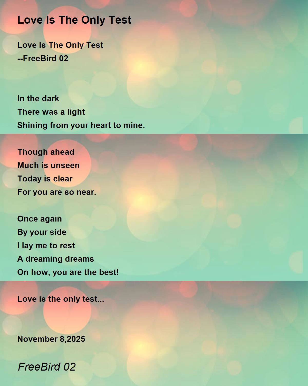 Love is the only test...
