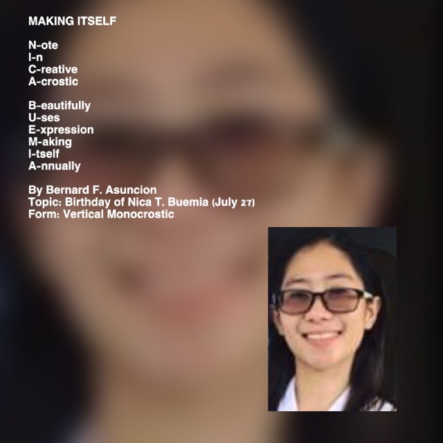 Topic: Birthday of Nica T. Buemia (July 27)