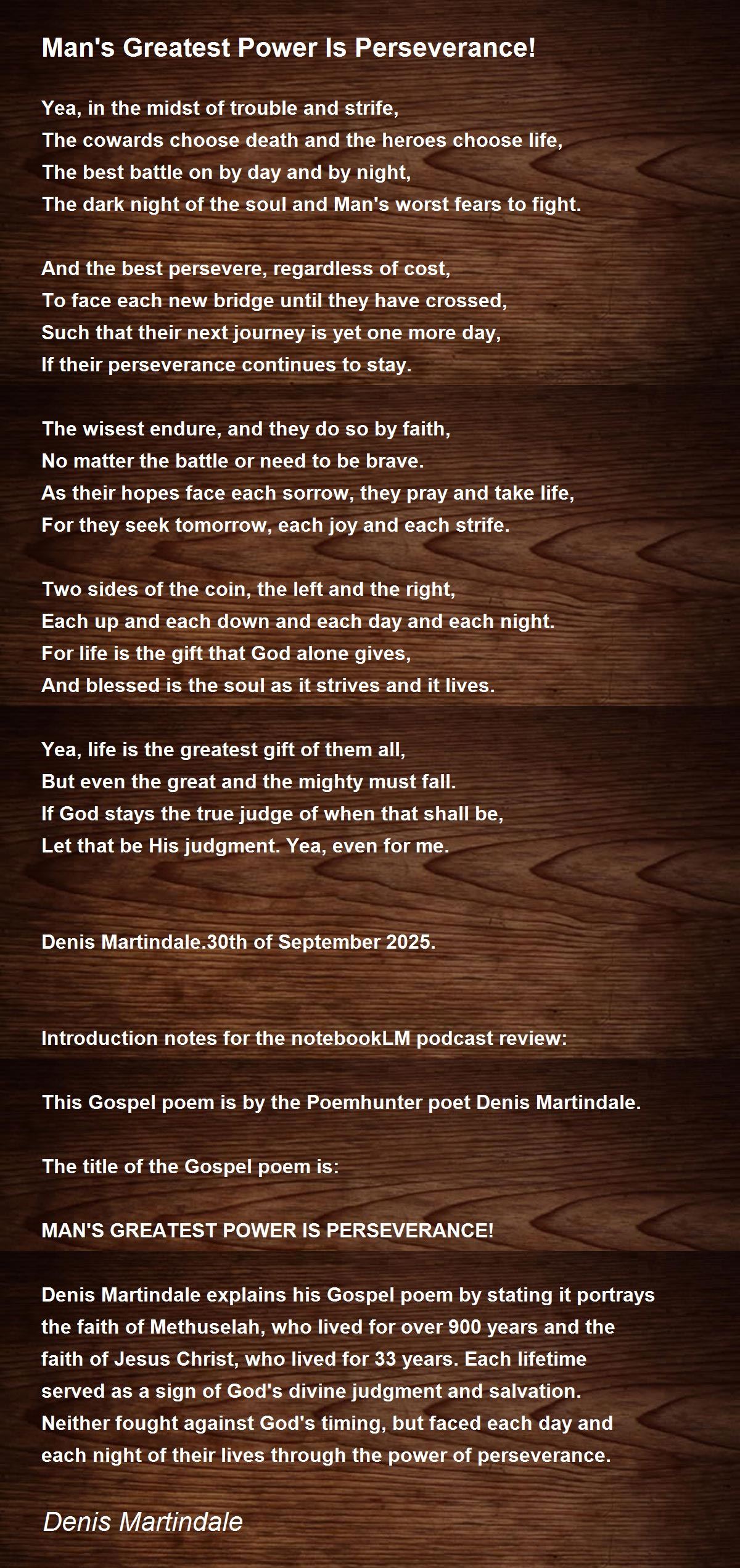 This Gospel poem is by the Poemhunter poet Denis Martindale.
