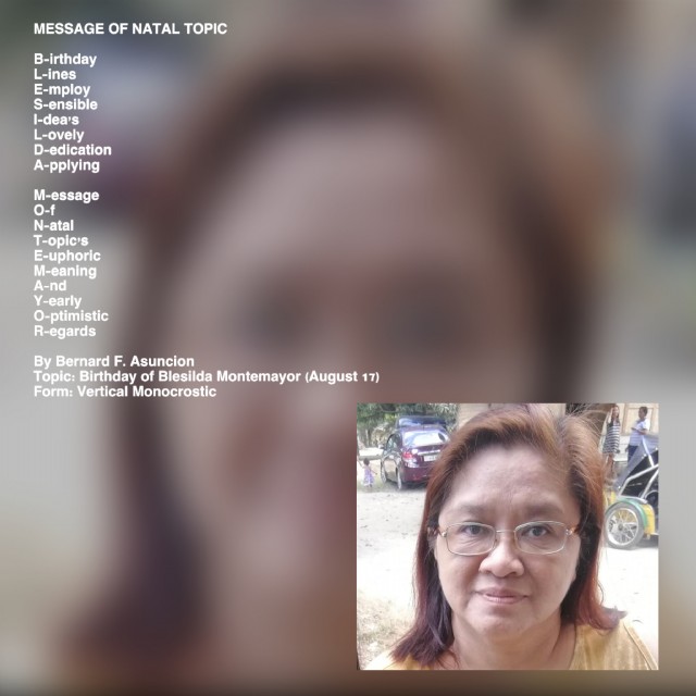 Topic: Birthday of Blesilda Montemayor (August 17)