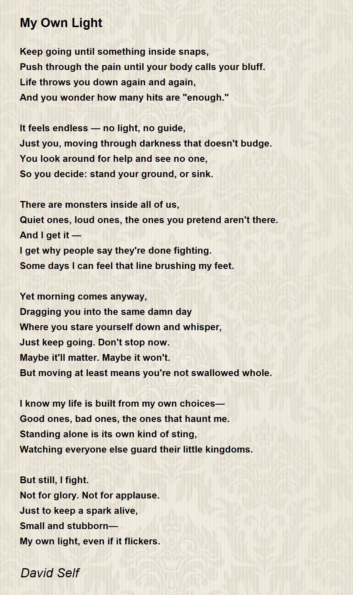 My own light, even if it flickers.